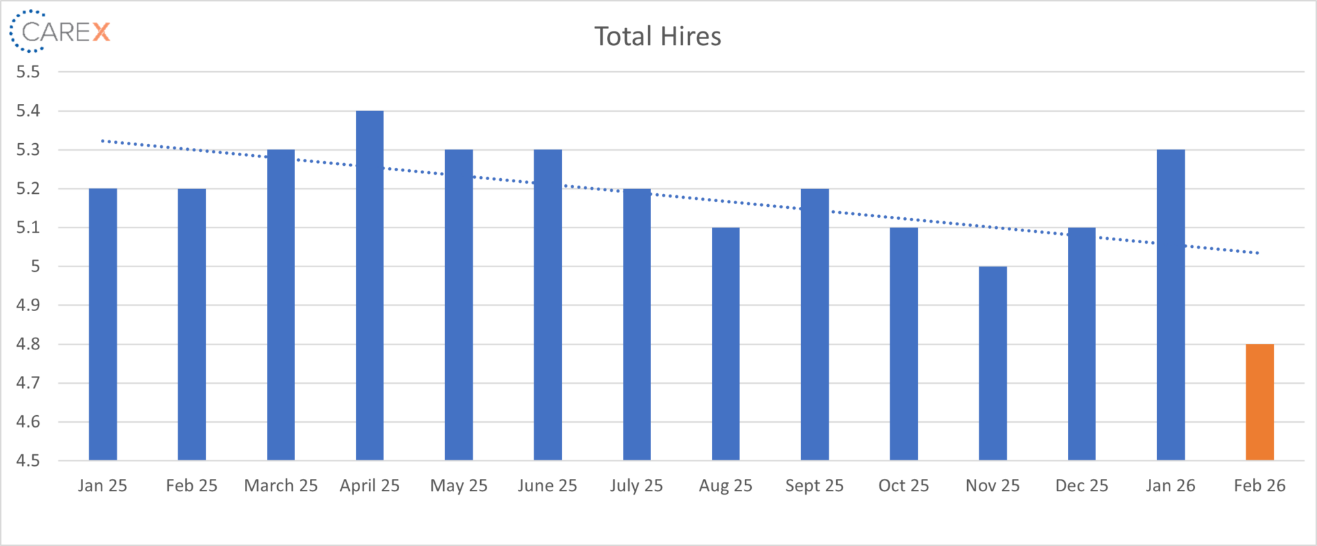 - Hires dropped to 4.8 million, down from 5.3 million
