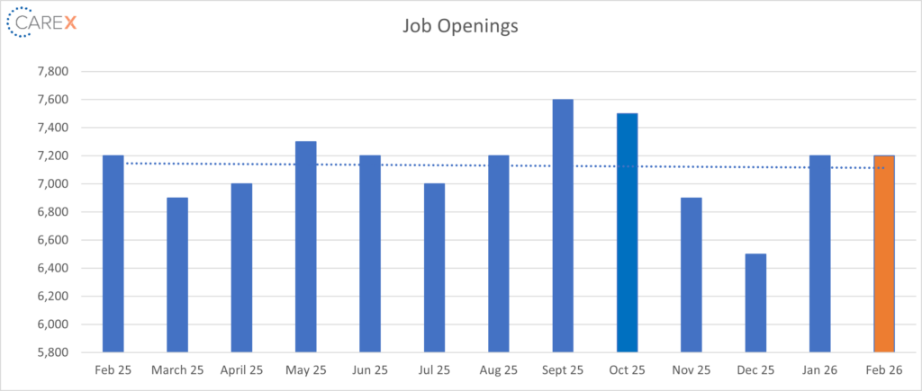 - In 2025, the annual average job openings level was 7.1 million, a decrease of 571,000 from 2024