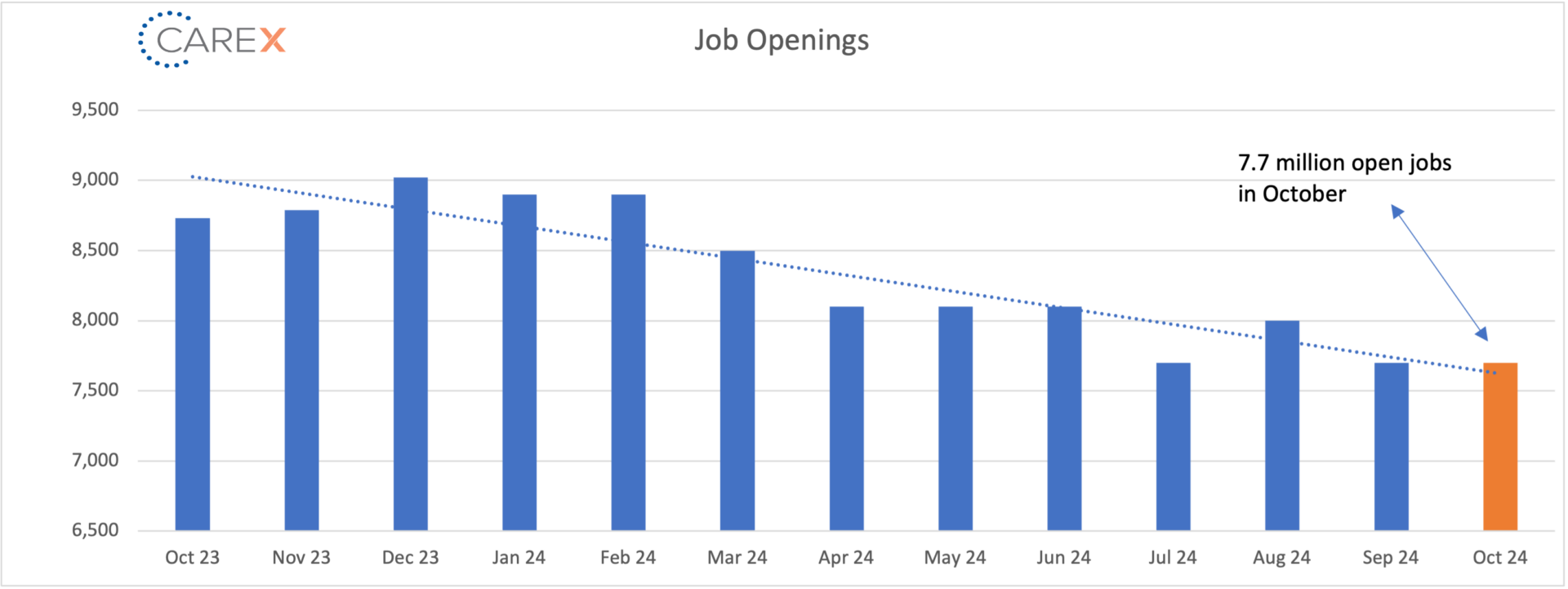- Job openings held steady at 7.7 million, down from 8 million two months ago