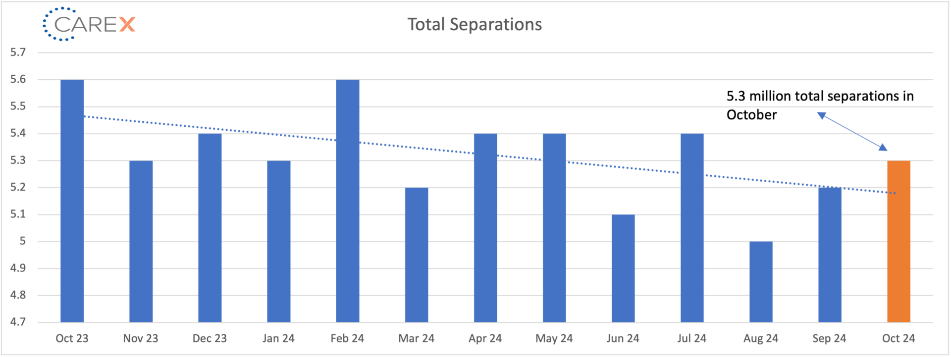 - Total separations increased slightly to 5.3 million, up from 5.2 million the previous month