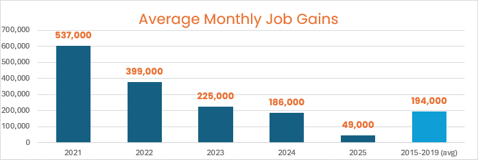Instead of looking forward, let’s look backward. There are a few key data points that explain the headlines about a “deteriorating labor market” and help frame what might happen next. Specifically, I’ll focus on three metrics: