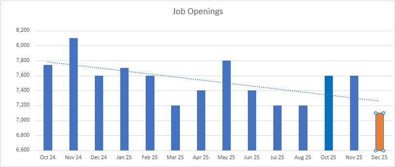 - Job openings fell to 7.1 million, down from 7.6 million the previous month