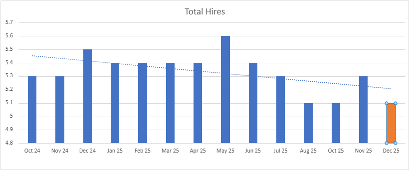 - Hires remained steady at 5.1 million, down from 5.3 million two months ago