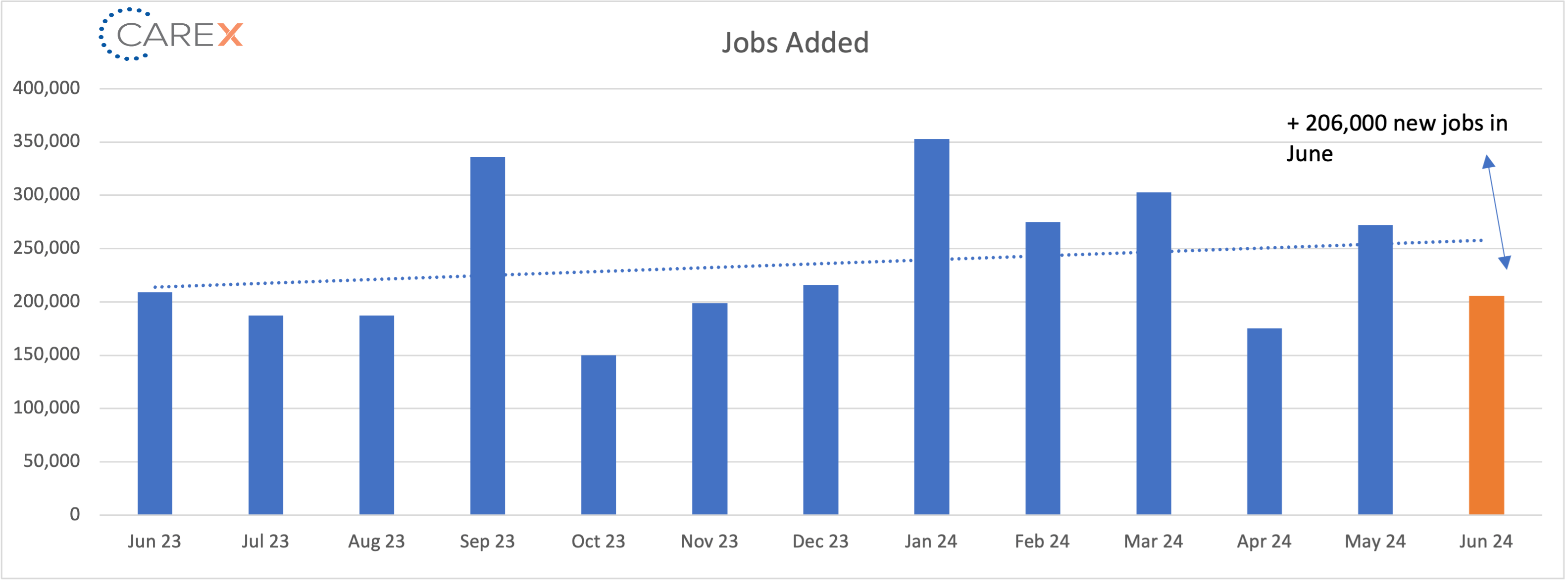 - New Jobs – The U.S. added 206,000 new jobs last month, through the first half of the year, the US has added 1.3 million jobs at an average pace of 222,000 per month.