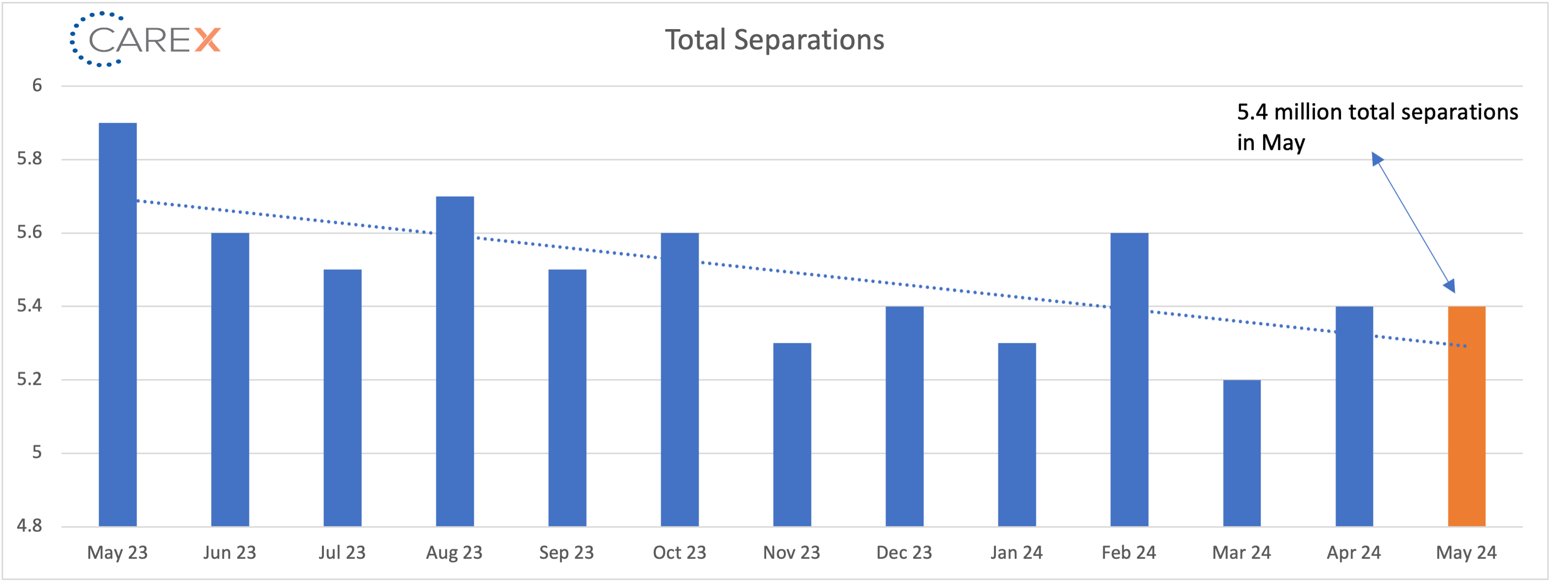 - Total separations remain unchanged at 5.4 million.