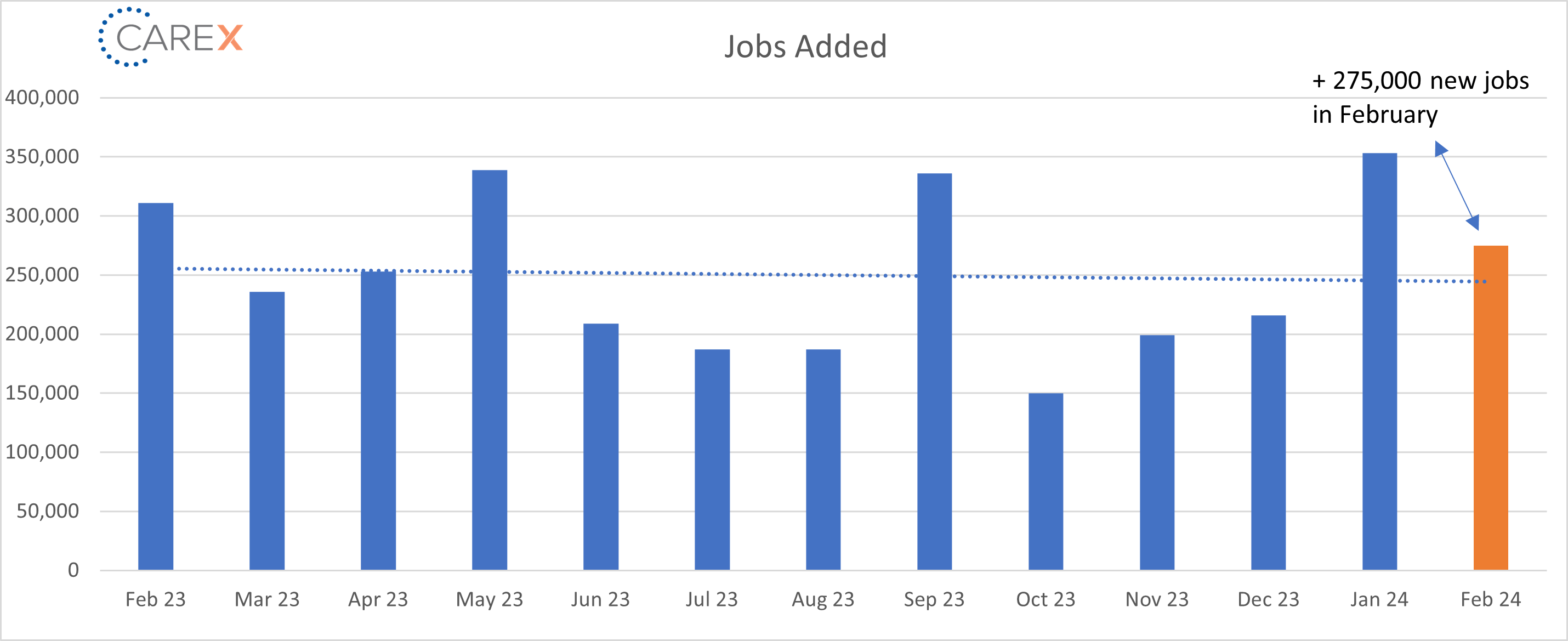 - New Jobs – The U.S. added 275,000 new jobs in February, once again beating expectations.