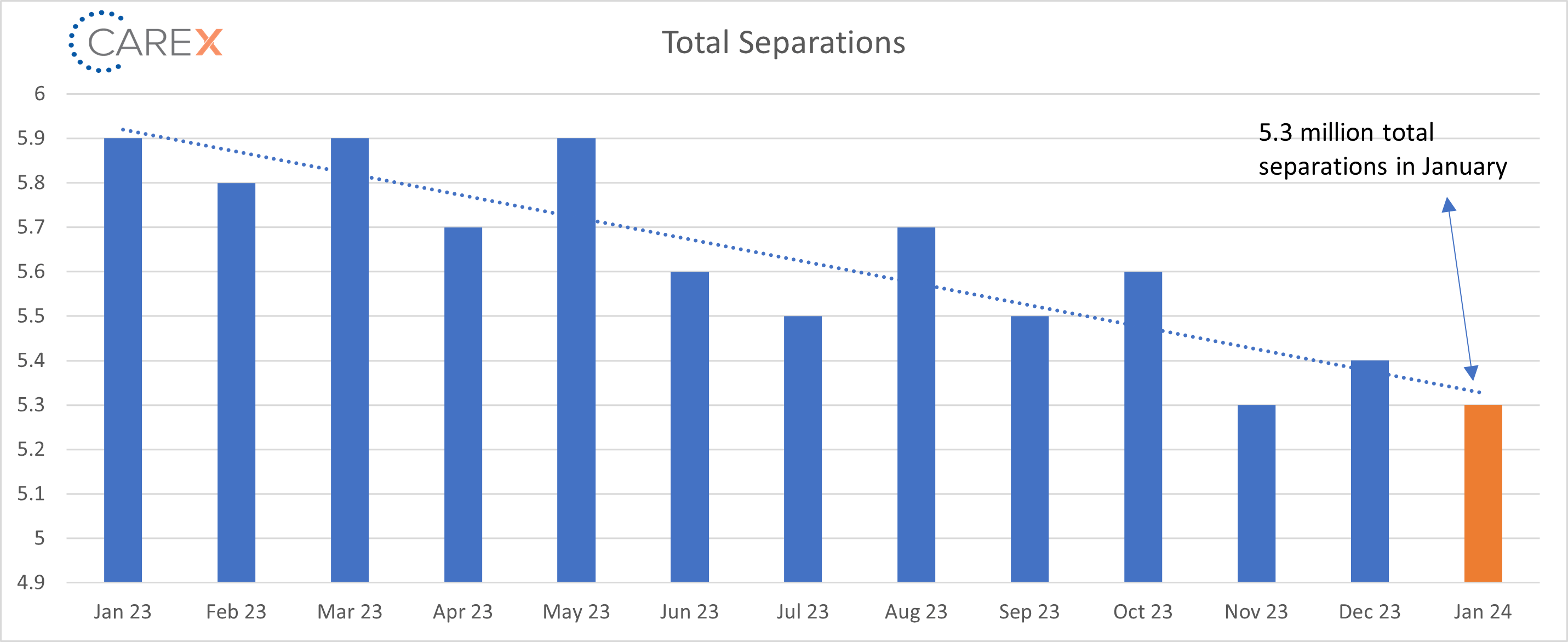 • Total separations decreased slightly to 5.3 million, down from 5.4 million.