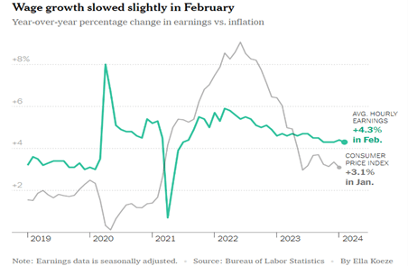 Has stabilized. It’s a bit counterintuitive—as workers, we all want our wages to increase; however, we’re seeing that strong job gains don’t automatically trigger wage growth. This balance is necessary to curb interest rate hikes. As it stands, I feel (hope) the Fed will likely cut rates mid-year.