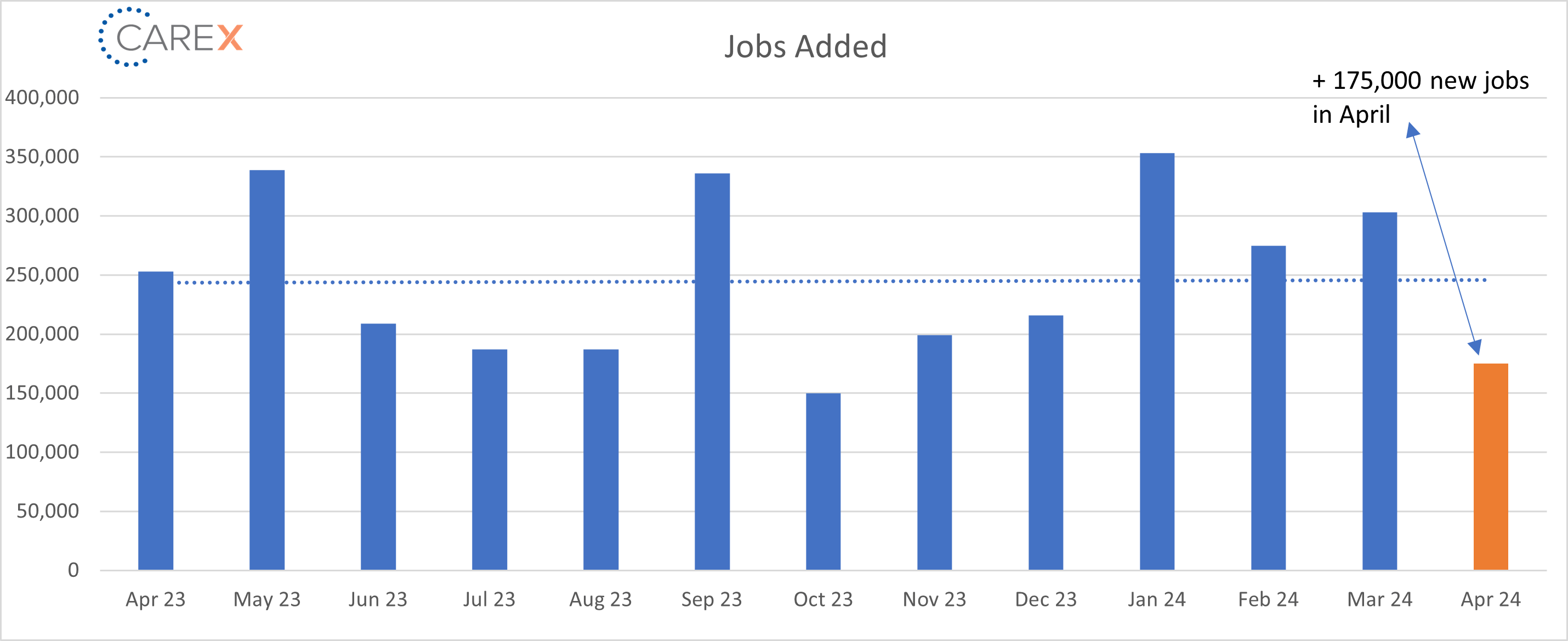 - New Jobs – The U.S. added 175,000 new jobs last month, notably lower than the average monthly gain of 242k over the prior 12 months.