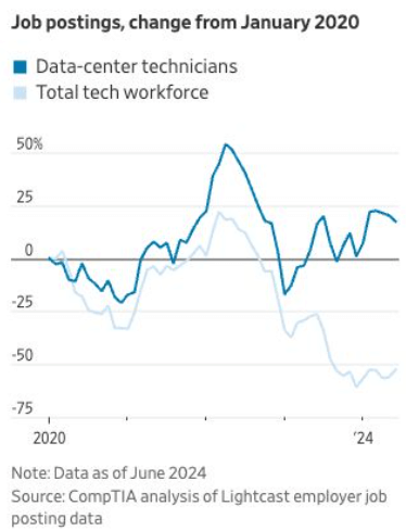 Even the tech sector (one of the hardest hit sectors over the past two years) has pockets of optimism. For instance, largely driven by AI innovations, Data-Center Technicians are in increasingly high demand (there are actually multiple examples of optimism in the Tech sector). While IT workers have been hit hard (see below), we’re actually starting to see employment stabilize, and are now seeing encouraging growth in certain areas.