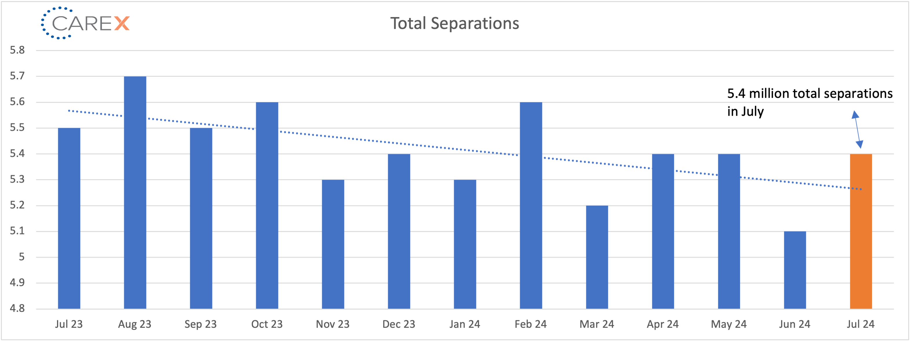 - Total separations increased to 5.4 million, up from 5.1 million the previous month